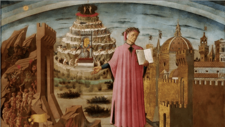 So this painting doesn’t just represent the internal narrative of the Divine Comedy, but it’s also a tribute and commemoration to Dante himself. His centrality within this multifaceted canvas and the presence of the laurel wreath, a historical symbol of poetic success, illuminates his importance to the cultural legacy of Florence and to the 1400s Florentine community. Dante’s words and literary worlds, as the canvas portrays, are inextricably linked to the cultural vibrancy and identity of Florence.
